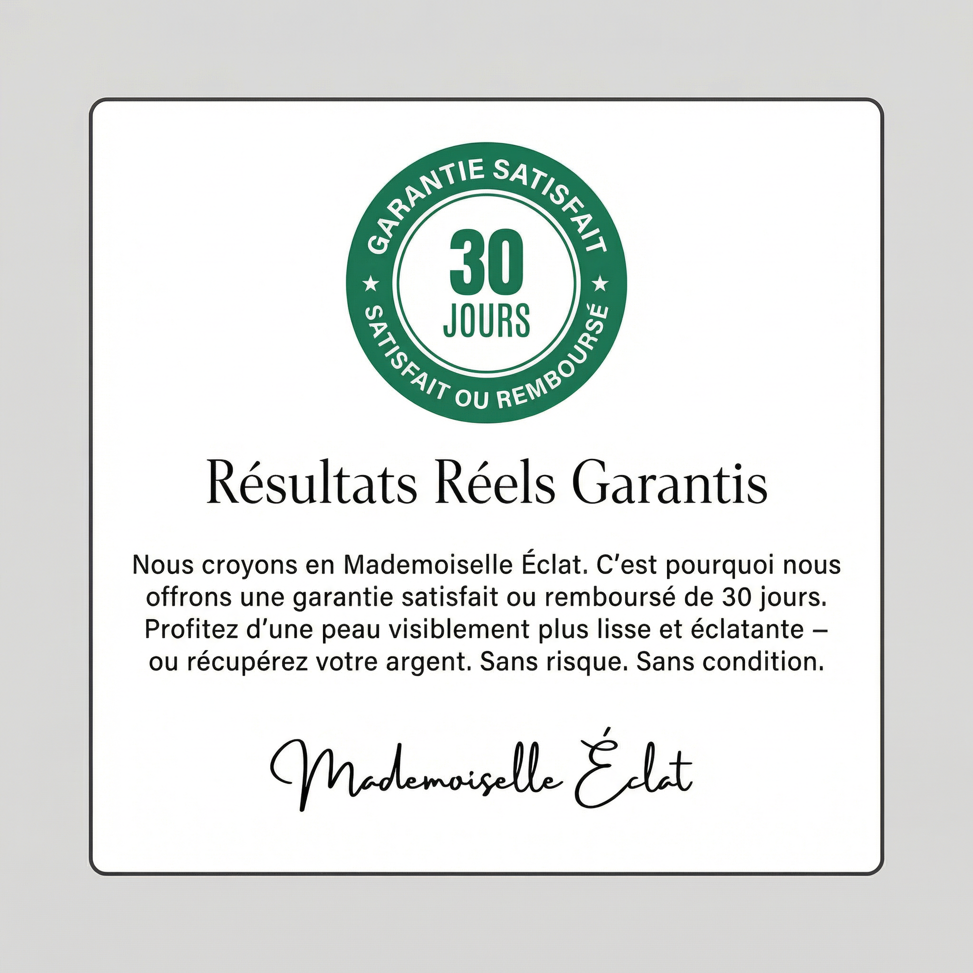 Vous êtes entièrement protégée. Si vous n'êtes pas satisfaite des résultats, retournez le produit dans les 30 jours pour un remboursement complet. Nous sommes convaincues que vous adorerez les résultats comme des milliers d'autres femmes.
