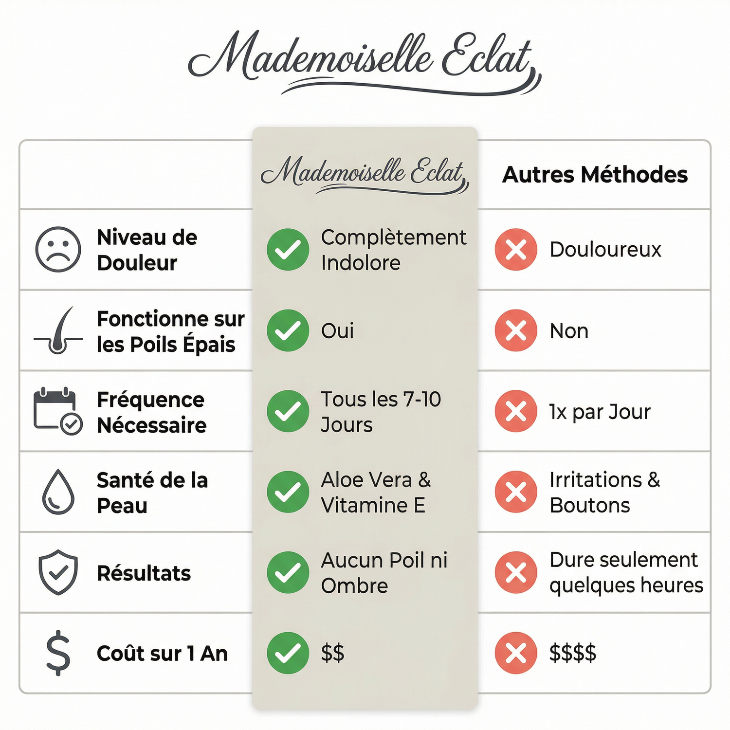 Sylvie MAcheteur vérifié"Zéro irritation sur ma peau ultra-sensible. Zéro odeur chimique. Zéro douleur. Juste une peau parfaitement lisse. Enfin."