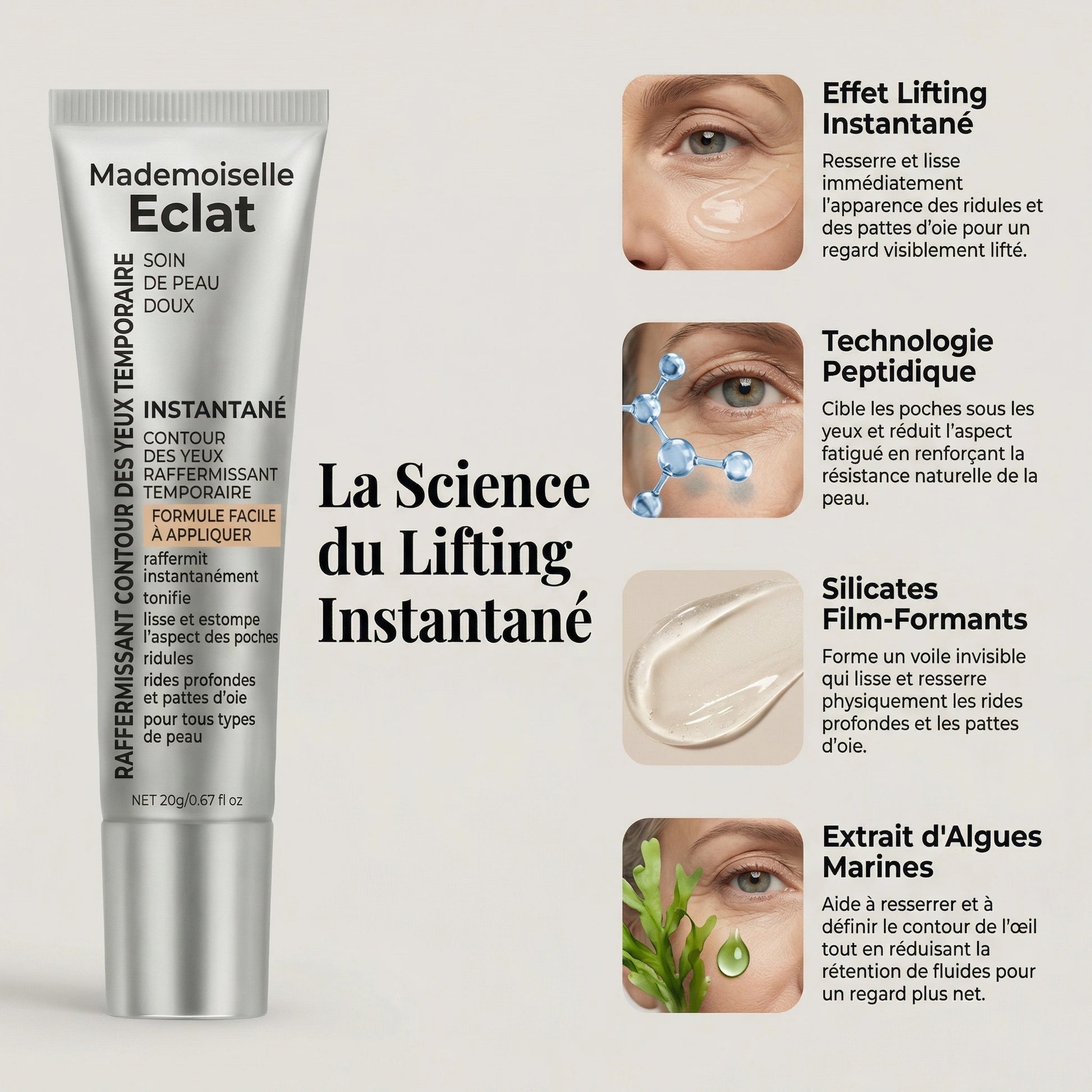 La plupart des produits que vous avez essayés étaient trop génériques, trop gras et bien trop faibles pour créer un véritable effet tenseur. Notre formule associe une matrice tenseur filmogène à des peptides ciblés. Elle lifte physiquement la zone en quelques minutes tout en soutenant la peau en profondeur sur le long terme. Elle résout le véritable problème mécanique au lieu de prétendre qu’une simple hydratation peut effacer les poches.